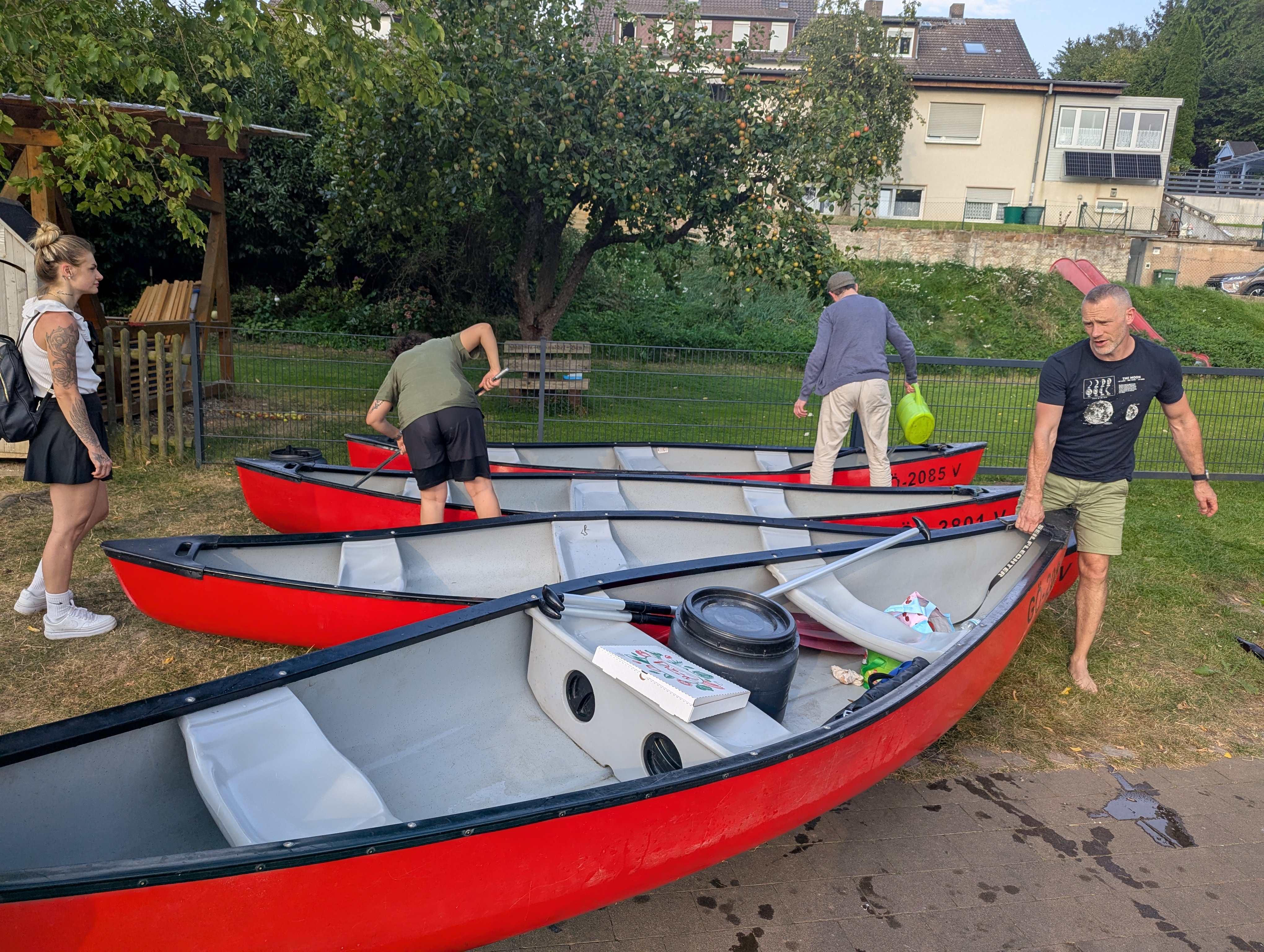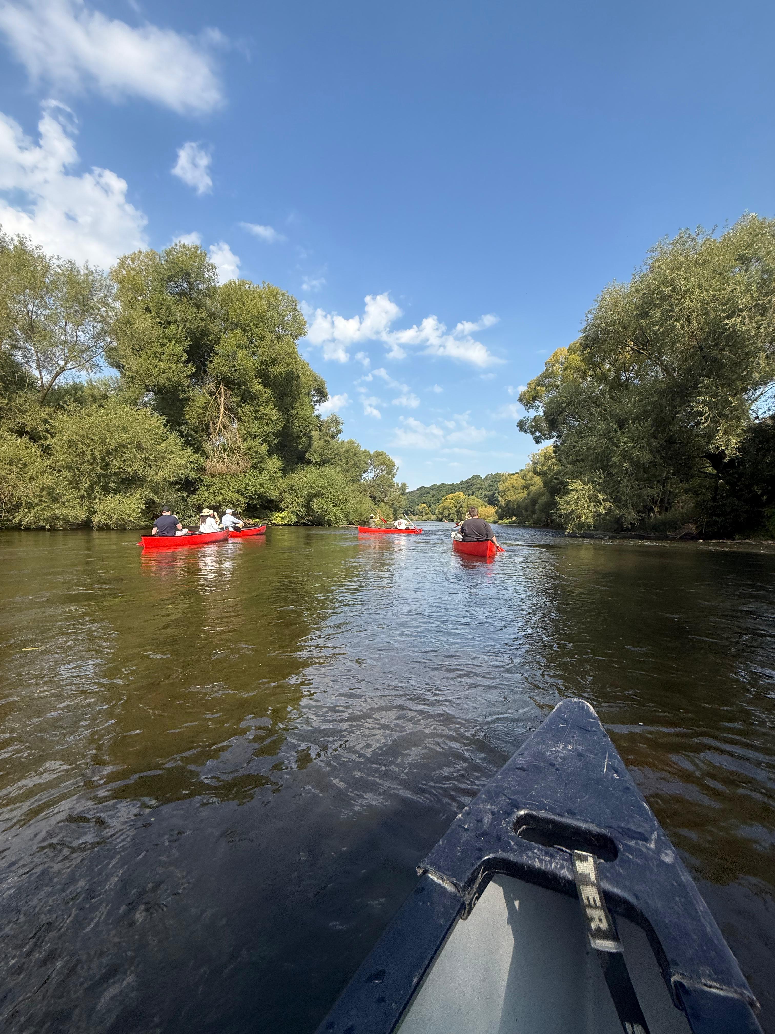 Als Ausgleich zum anspruchsvollen Alltag in der Umschulung zum Fachinformatiker für Anwendungsentwicklung organisieren wir regelmäßig Freizeitaktivitäten. Dieses Mal stand eine Kanutour auf der Fulda auf dem Programm. Die Kanus haben wir bei der Fulle-Marie in Fuldabrück-Bergshausen geliehen.